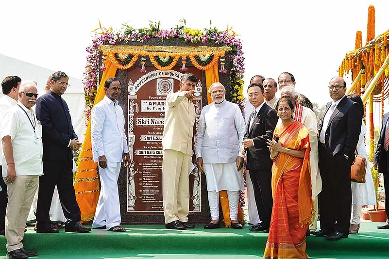 Ever since he conceptualised Amaravati, Naidu’s political journey has been marred by missteps. In June 2015, he was embroiled in a cash-for-vote scandal after taped phone conversations of TDP leaders got leaked. They were allegedly trying to bribe a nominated MLA of Telangana to vote for a candidate in the legislative council election. The angry Telangana chief minister, K. Chandrashekhar Rao, had the state police file an FIR and investigate the case.