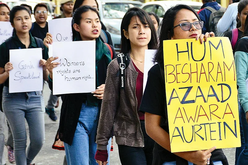 Writer-activist Akashitora says that influential organisations like AASU have remained highly patriarchal with not a single woman in its leadership since its formation. “They must send out the right message by giving women leadership roles…Our society must shed its misogyny. Boys must be taught the meaning of consent. Is it so hard for educated parents to tell their sons not to look at women just as objects of lust?” Many others feel that easy access to pornography and drugs have also fuelled the spurt in crime against women, especially by underage boys. Activists also blame the “Delhi-obsessed” national media of failing to highlight such crime in the Northeast, which could have put pressure on states’ police to be more proactive. AASU chief advisor Samujjal Bhattacharyya, however, denies the allegations. “AASU is working on the issue (of crime against women) and also working with other women organisations,” Bhattacharyya tells Outlook.