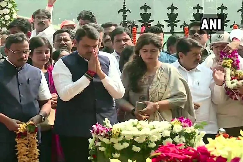 Shiv Sena workers raised slogans against former Maharashtra chief minister Devendra Fadnavis who was leaving Shivaji Park in Mumbai after paying tributes to Balasaheb Thackeray on his seventh death anniversary on Sunday.
