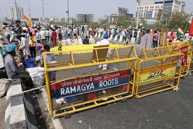 Farmers camping at the Ghazipur border blocked a carriageway of National Highway-9 from Delhi to Ghaziabad in the morning, but there was not much activity by the protesters in the city till afternoon.