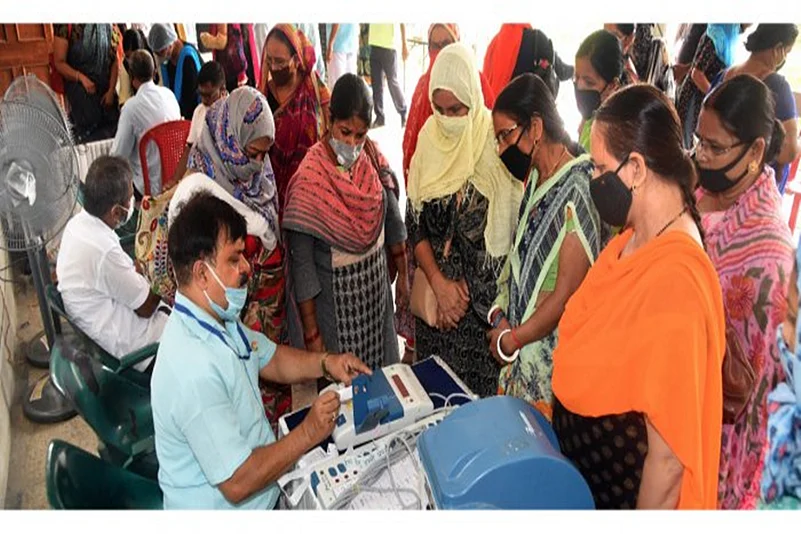 Polling began at 7 am, but the time for its conclusion has been extended by one hour till 6 pm to facilitate Covid-19 patients and those with symptoms of the disease to exercise their franchise during the final hour.
