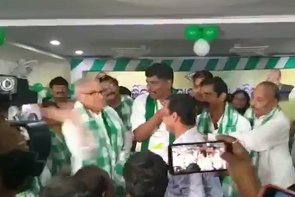 BJD MP Chandrasekhar Sahu on Tuesday was caught on camera slapping a party worker during a meet in Paralakhemundi of Gajapati district in Odisha.