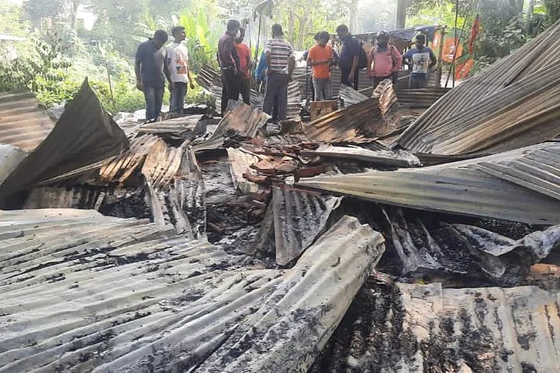 Alleging that it was a case of arson carried out by "TMC goons", BJP state vice-president and Barrackpore MP Arjun Singh tweeted, "This picture represents the situation of DEMOCRACY in WB under Mamata Banerjee's Gunda Raj."