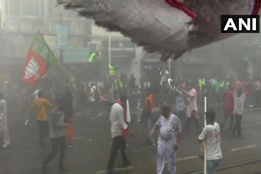 As the BJP activists jostled to reach the Bowbazar crossing in the city, police resorted to firing tear gas shells and water cannons to disperse them. In retaliation, the saffron party workers raised slogans and hurled stones and bottles at the officers.