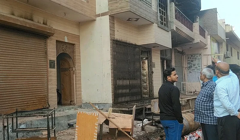 Jagroshan Lal's house, which was attacked by a mob, in Brijpuri, Northeast Delhi. (Photo: Aritry Das/Outlook)