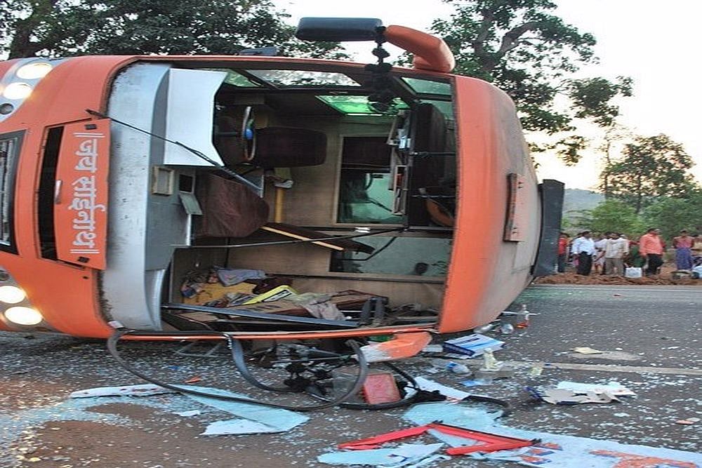 A bus carrying nearly 100 passengers overturned on Yamuna Expressway on Thursday injuring around 20 passengers.