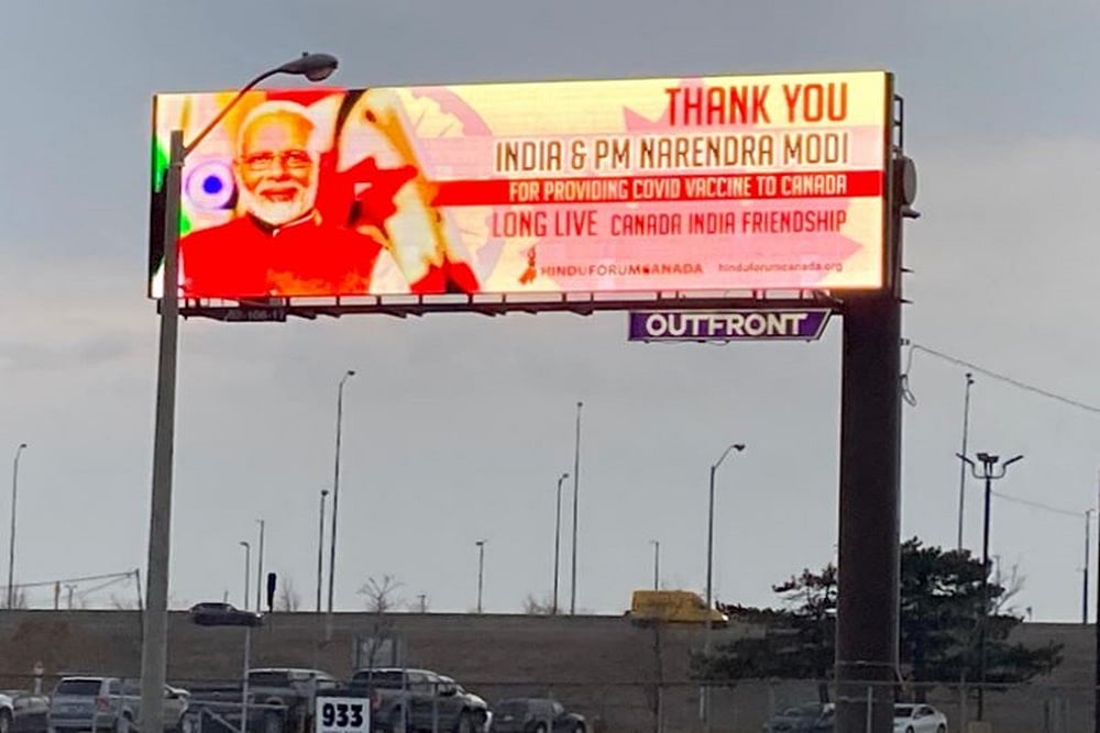 Nearly a week after Canada received 500,000 doses of Covid-19 vaccines from India, a number of billboards thanking Indian Prime Minister Narendra Modi for providing the vaccines have been put up in the Greater Toronto area. On January 20, India provided over 481 lakh doses of vaccines to various countries after it started external supplies of Made-in-India vaccines.