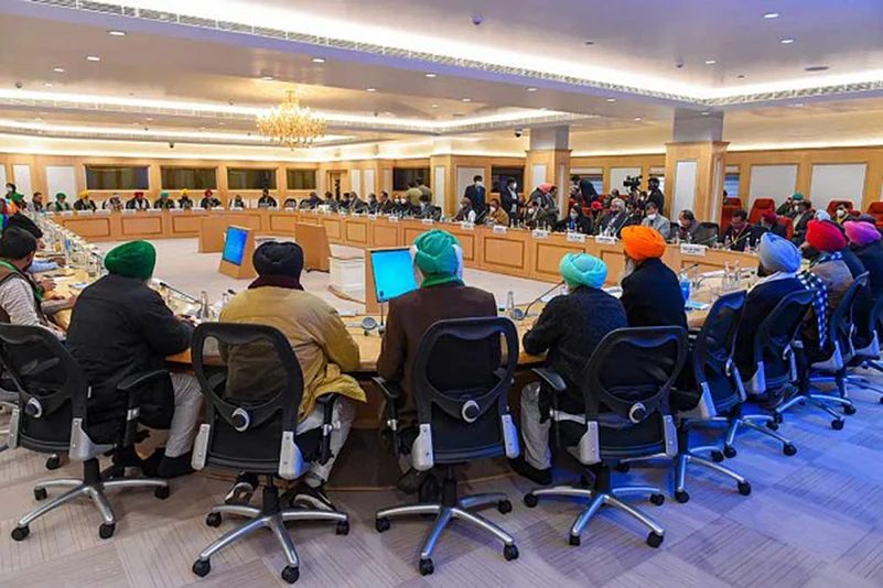 The meeting between three Union ministers and representatives of 41 farmer groups began at around 2.30pm at Vigyan Bhawan.