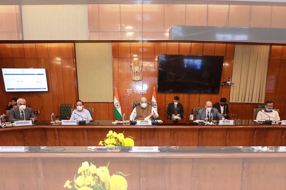 The home minister reviewed the situation arising due to the spike in Covid-19 cases in Delhi and discussed ways to deal with it, a home ministry official said.