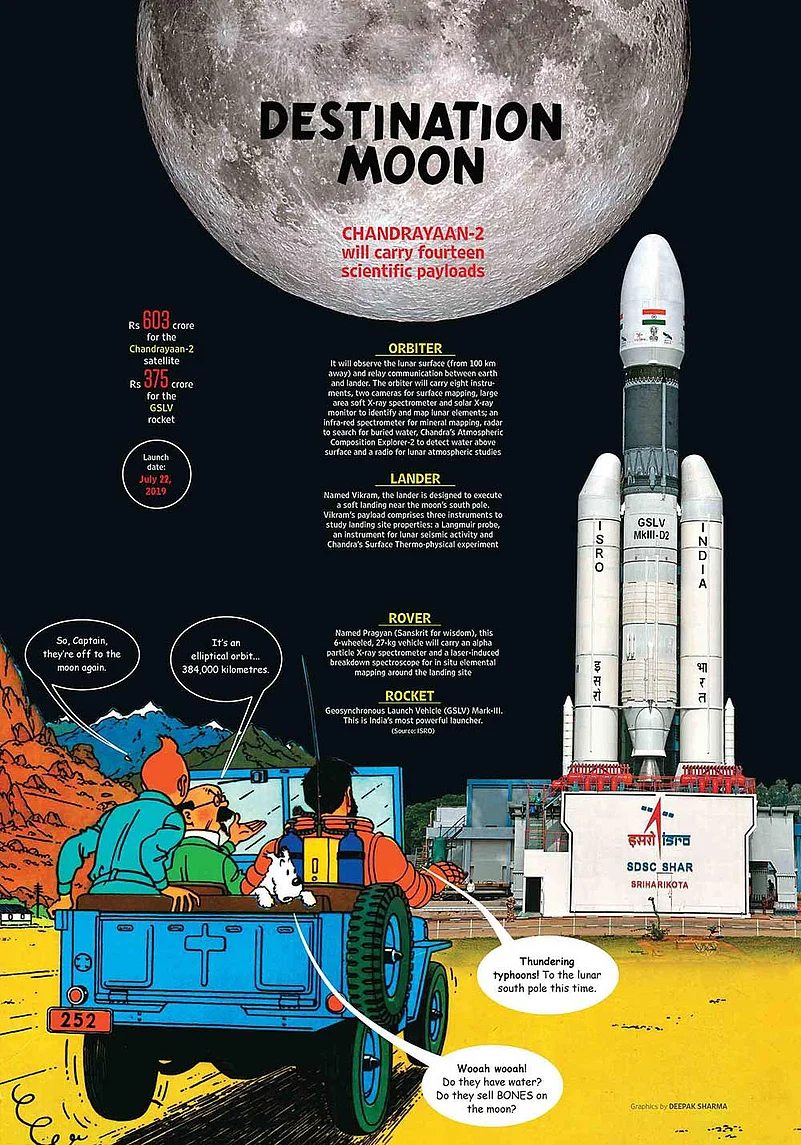 Setting in place India's bid to return to the moon, the Indian space agency's heavy-lift rocket, the Geosynchronous Satellite Launch Vehicle-Mark III (GSLV-Mk III), carrying the 3,850 kg Chandrayaan-2 spacecraft, was launched from the Sriharikota spaceport on Monday afternoon.