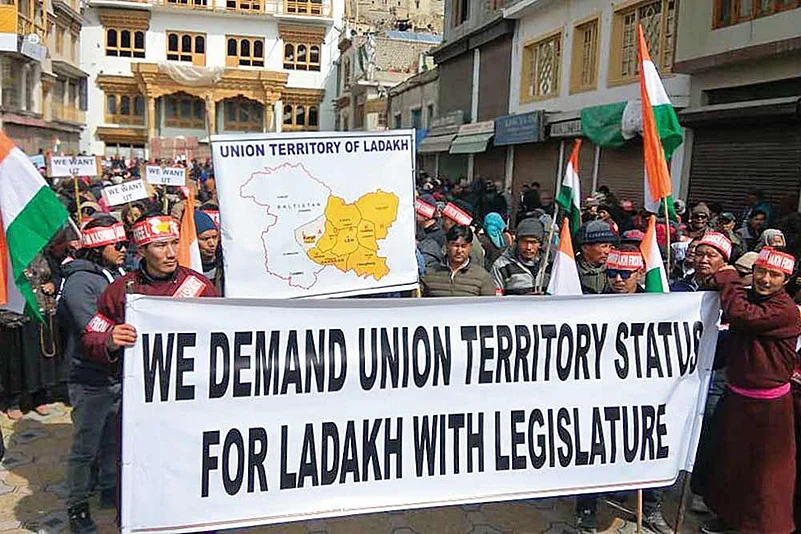 Raina insists that delimitation of constituencies has nothing to do with the bank raids. The last delimitation commission, set up during President’s rule in 1995 with Justice (retd) K.K. Gupta as chairman, had increased J&K’s assembly seats from 76 to the present 87—Jammu’s went up from 32 to 37, Kashmir’s from 42 to 46, and Ladakh from two to four. According to the 2011 census, the Valley’s population was 68,88,475 with 96.4 per cent Muslims; in Jammu division, it was 53,78,538, with 62.55 per cent Hindus and 33.45 per cent Muslims. Ladakh’s population was 2,74,289, comprising 46.4 per cent Muslims, 39.67 per cent Buddhists and 12.11 per cent Hindus.