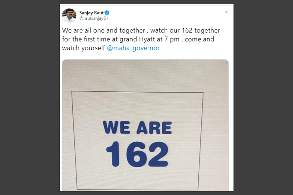 "The idea is to turn the public perception towards us. Once we parade 162 MLAs in one hall, entire nation will come to know that BJP is playing a dirty game in Maharashtra by misusing office of the governor," PTI news agency quoted an NCP leader as saying.
