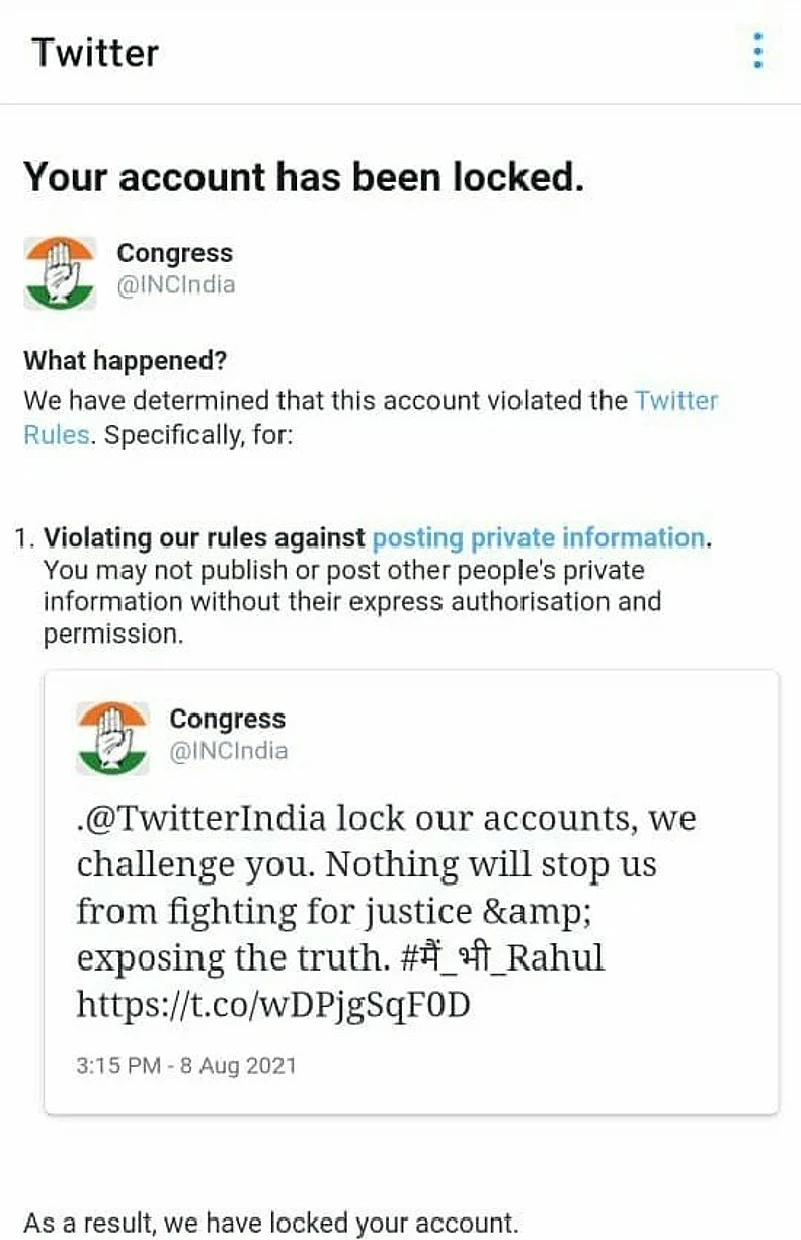 This comes close on the heels of temporary suspension of Rahul Gandhi's Twitter account.