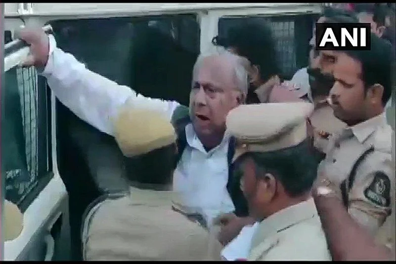 V. Hanumantha Rao, Harsha Kumar and their supporters were arrested as they reached Panjagutta crossroads in the city with a statue and tried to install it at the same place where a similar attempt by a group was foiled by the municipal authorities in April.