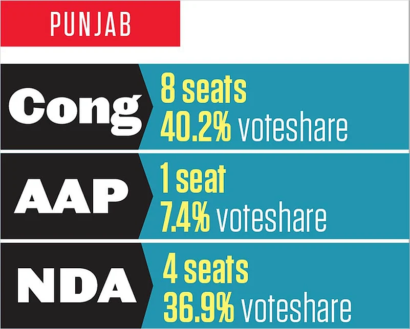 Harsimrat Kaur Badal and her husband Sukhbir Badal, inheritors of the legacy of Parkash Singh Badal, the SAD supremo, were the only Akali winners from Bhatinda and Firozpur. The AAP, which had stunned political observers in 2014 by wresting four seats in Punjab, managed to win just one—Bhagwant Mann in Sangrur.