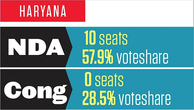 For the Hooda duo, a win was necessary to refurbish their image as undisputed leaders of the state’s 27 per cent Jat population. The BJP’s strategy of fielding Brahmin nominees in Sonipat and Rohtak helped the party consolidate the non-Jat votes while the Jats split between the Congress and the JJP. The other eight Congress candidates lost too, as the BJP swept Haryana. Manohar Lal Khattar, the first Punjabi chief minister of Haryana, couldn’t help but boast that his BJP had not just won the state’s 10 seats but also the Chandigarh constituency. With assembly elections due later this year, Khattar would be hoping that the surge will sustain.