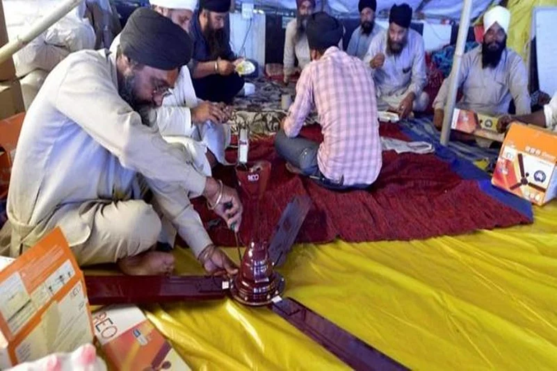 According to reports, volunteers at the protesting site in Delhi are making bamboo tents to keep people safe from the heat. A ceiling fan will also be hung through the bamboo poles.