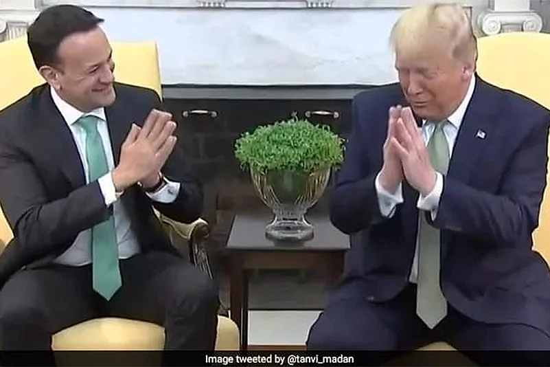 As the deadly coronavirus or COVID19 wreaks havoc across the world, killing thousands, US President Donald Trump and visiting Irish Prime Minister Leo Varadkar greeted each other in the traditional Indian way of 'namaste' at the White House on Thursday.