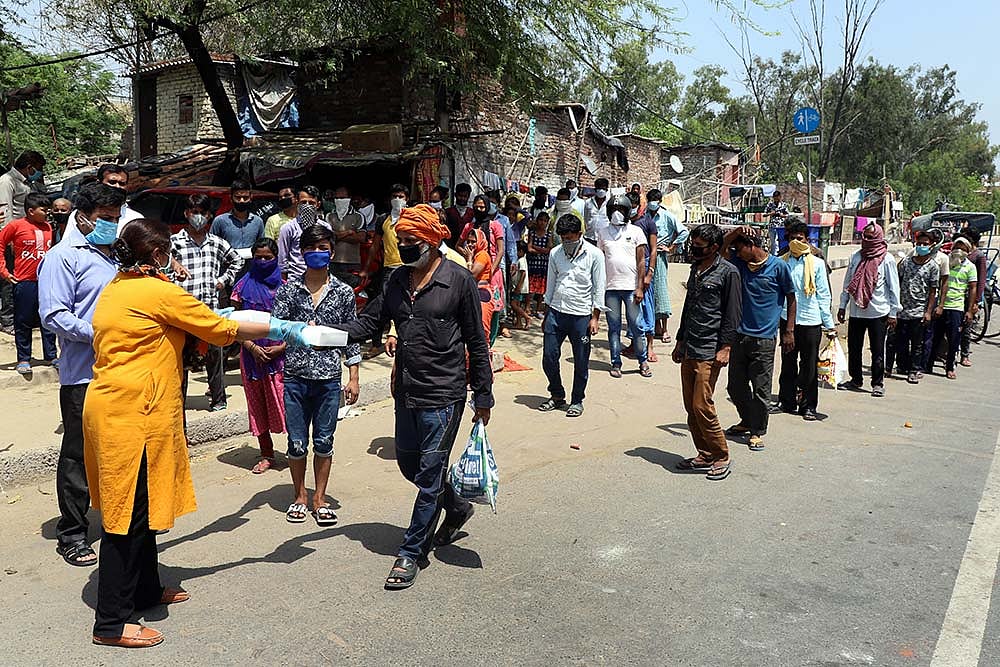 In Delhi’s Kalkaji neighbourhood, Kamal Kardam, 43, and Afzal Qadri,30, feed migrant labourers every day. They cook vegetarian pulao for some 100 people, load the packets on their scooters and set out to feed those they can find, mostly around their locality. “We are not very rich, but till the time it’s doable, we shall do it,” says Qadri.