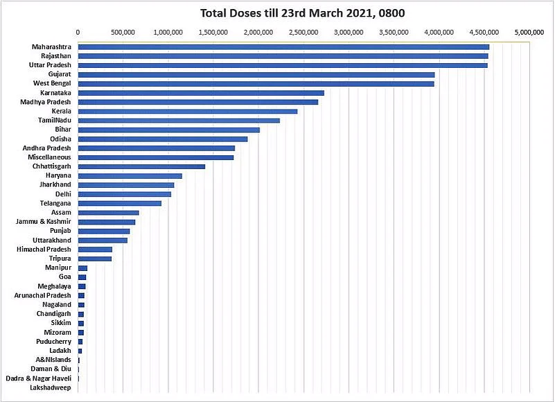 Meanwhile, the vaccination drive against Covid-19 is at its pace in India as the country touched the milestone of administering 5 crore doses on March 23.