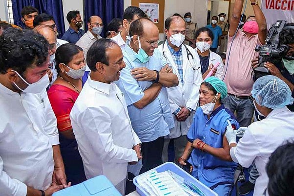 Union Minister of State for Home G Kishan Reddy and Telangana Health Minister Eatala Rajender formally launched the vaccination programme at the state-run Gandhi Hospital, Hyderabad