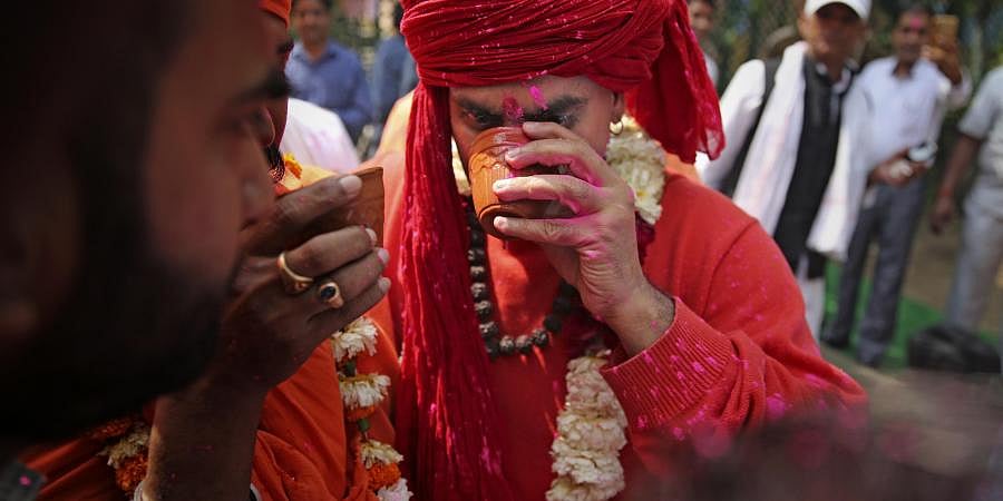 People lined up for their share of the "miracle liquid" being poured from kettles into 'kulhads', believing that it will protect them from coronavirus or cure them in case they have already been infected. It was not medicine or herbal concoction being served in the clay cups but cow urine.
