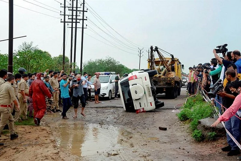 The Uttar Pradesh Police has now claimed that a herd of cows and buffaloes suddenly appeared before the vehicle that was bringing gangster Vikas Dubey to Kanpur and caused the accident, following which the criminal tried to escape but was shot dead.