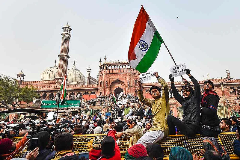 Braving cold weather, several people gathered outside the iconic Jama Masjid in Old Delhi to protest against the amended citizenship law.