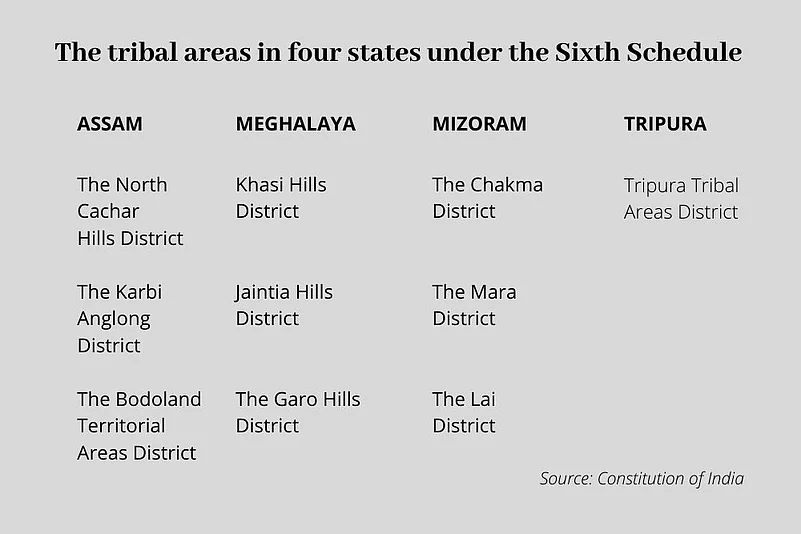 The tribal-majority Meghalaya has three ADCs that cover practically the entire state, except for a small part of Shillong. Assam has three ADCs and Tripura one, all with Sixth Schedule powers.