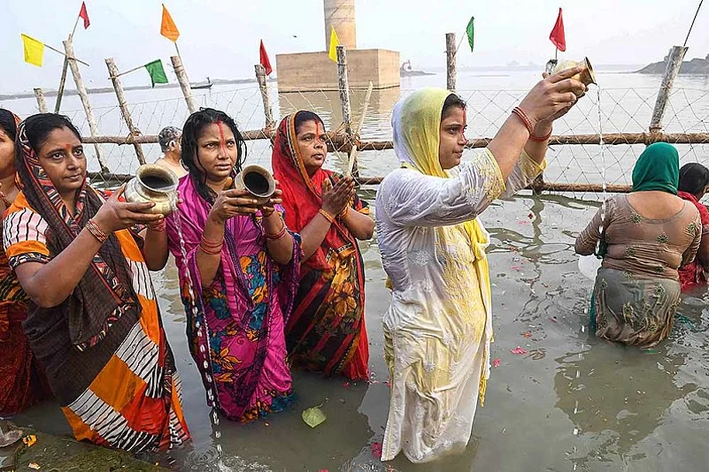 Chhath is celebrated after Diwali by people belonging to Bihar and eastern Uttar Pradesh. It involves the offering of 'Arghya' by fasting women to the Sun god in knee-deep water. It involves elaborate rituals spanning over three days.
