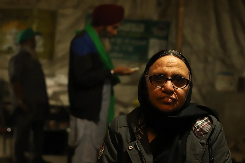 At the protest camping site at the Singhu border, a slogan written on a flex banner catches your eyes.
