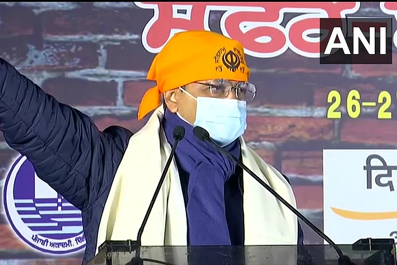 Kejriwal addressed the protesting farmers at at ‘Safar-e-Shahadat’ Kirtan Darbar, commemorating the martyrdom of Mata Gujri and the chaar sahibzaadas, at Singhu border.