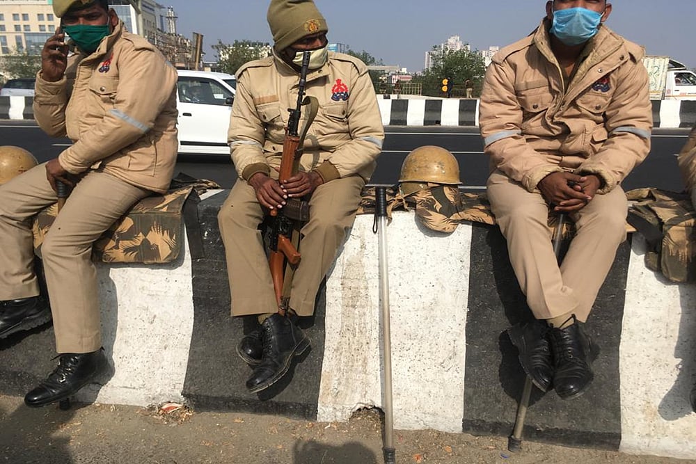 Security arrangements were tightened at the Chilla border between Delhi and Noida on Wednesday as farmer union leaders have threatened to completely block the key border point to press for repeal of the Centre's new farm laws.