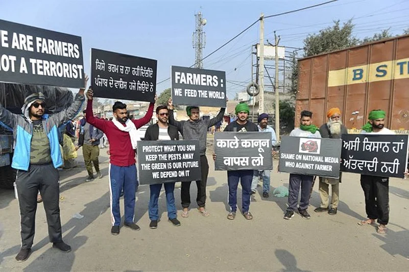 Students from Delhi on Tuesday put up posters and pictures at Singhu Border to highlight the plight of farmers across the country and create awareness on a range of issues.