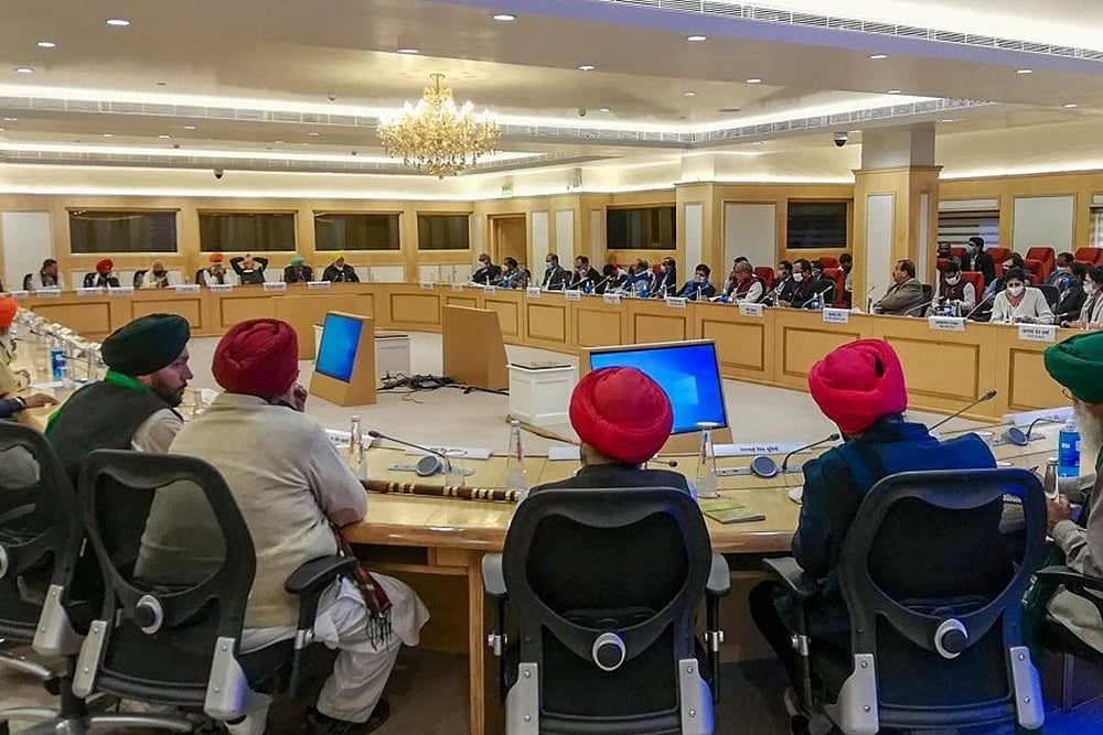 The fourth-round of talks began around noon amid ongoing protests by farmers seeking repeal of the laws.