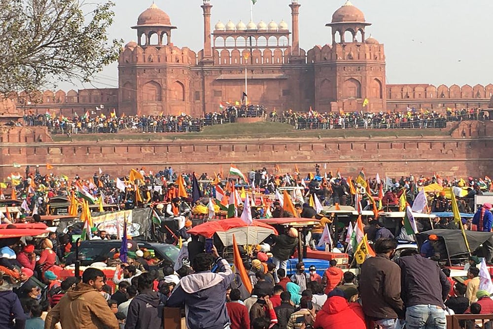 Protesting farmers breached the Red Fort earlier today and hoisted their flag atop the iconic structure. The Indian flag was untouched, only Nishan Sahib's flags -- a marker of Sikhism -- were hoisted by farmers on the poles. The iconic Delhi landmark is now occupied with protesting farmers with tractors lined outside.