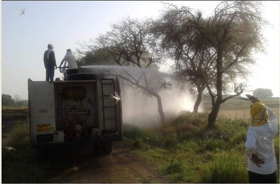 Protecting water bodies in rural areas has also emerged as a big challenge. After being sprayed with chemicals, many locusts continue to fly and die only after a few hours.