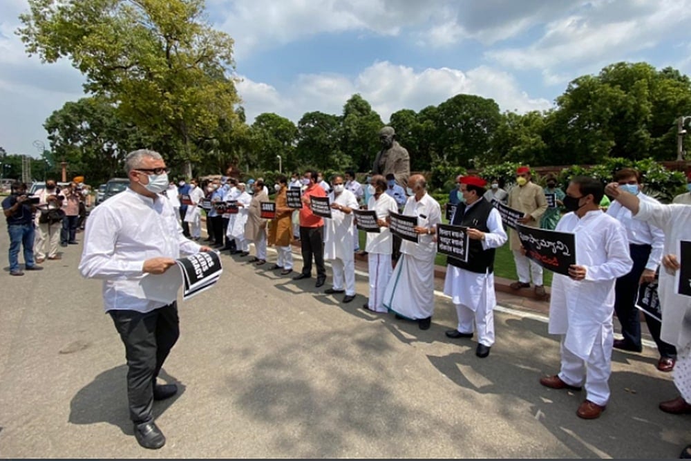 Opposition RS MPs are set to protest against the farm Bills and the suspension of MPs this afternoon as well, while the Opposition leaders in the Lok Sabha are planning to meet at 2 pm to decide on a dharna, sources said.