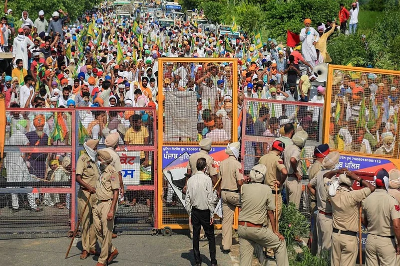 Thousands of farmers stayed put at various Delhi border points for the fifth consecutive day on Monday protesting the new farm laws, which they fear will dismantle the minimum support price system and corporatise farming.