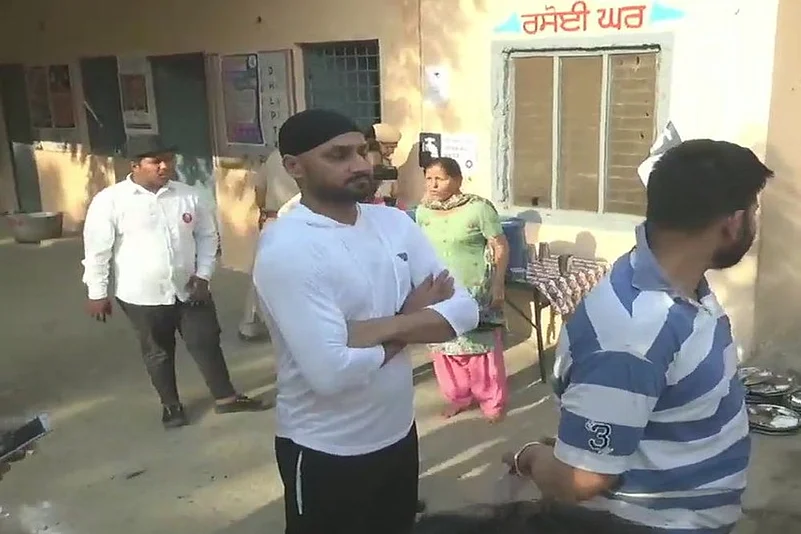 Cricketer Harbhajan Singh was among the first to cast his vote on Sunday at a polling booth in this Punjab's town.