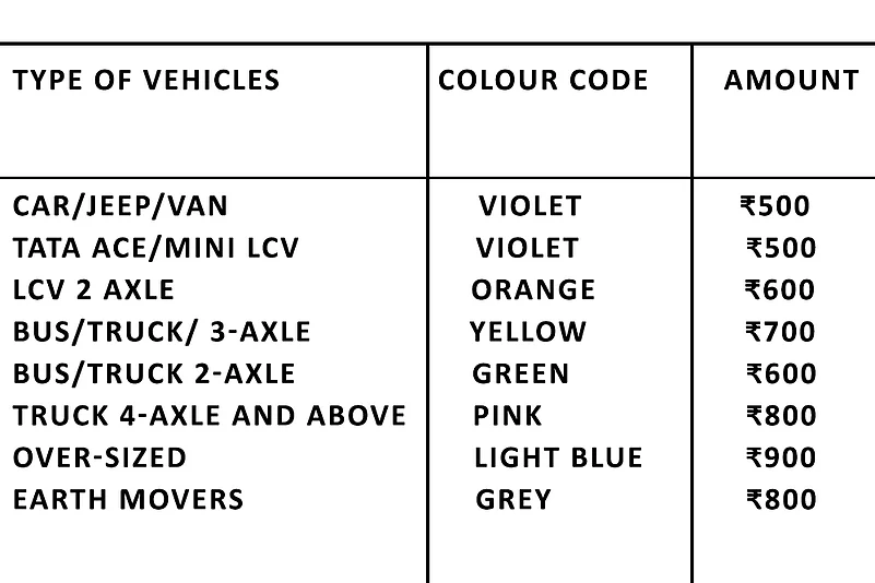 4. The FASTags come in different prices and colours, depending on the type of vehicle.