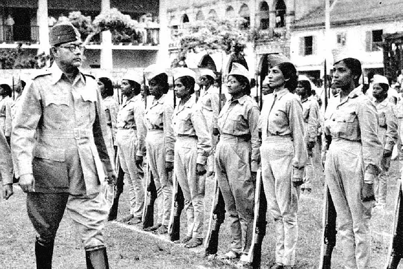 Netaji reviewing the Rani of Jhansi regiment in Singapore.