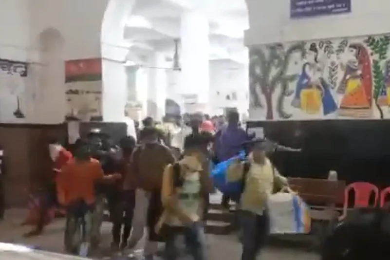 In a video that has now gone viral, dozens of people were seen rushing out of a railway station in Buxar district of Bihar. The reason behind the panic was the Covid test that they were required to undergo before boarding the train.