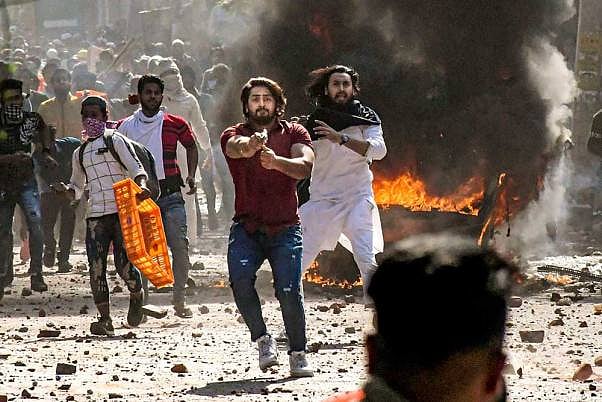 Protestors throw stones at Chand Bagh in Bhajanpura, where several incidents of arson and violence took place. Prohibitory orders under section 144 CrPC were imposed here along with other areas in Northeast Delhi. (Photo: PTI)
