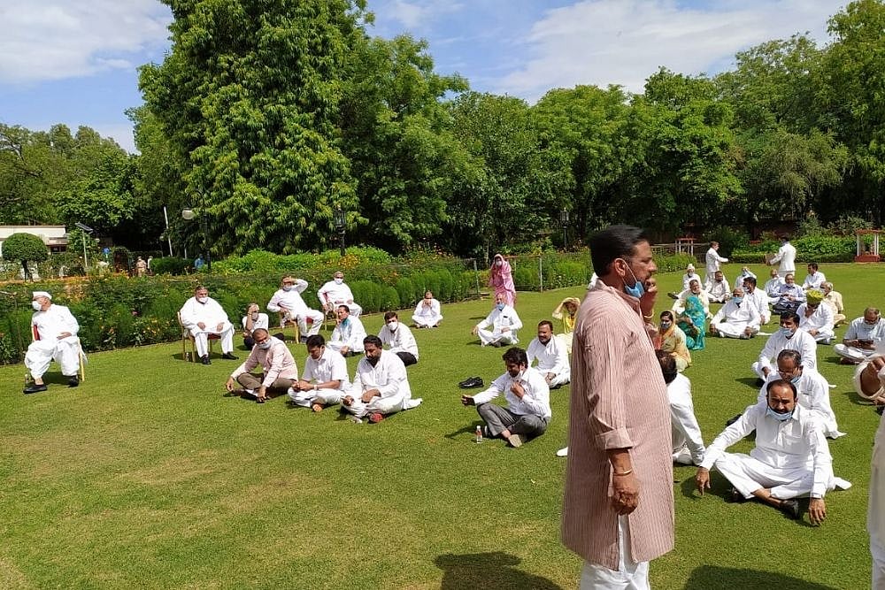 At the Raj Bhawan, while Gehlot met the Governor inside, the MLAs squatted on the lawns, at time shouting slogans in support of the Gehlot-led Congress government.