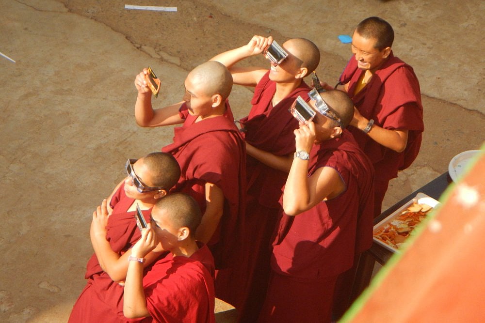 “Just as the Buddha said you have to learn and experience everything to end your ignorance,” said 27-year-old Tenzin Namsel from Tibet, “I saw the eclipse as an opportunity to learn something scientific, while also enhancing my karma.”