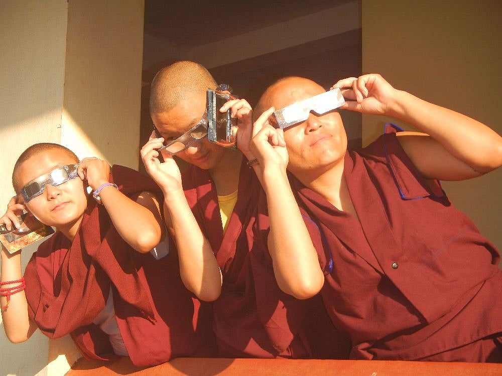 In December last year, women astronomy teachers associated with the Science for Monks and Nuns Project worked with the nuns to provide guidance, equipment and tools prior to the eclipse event.
