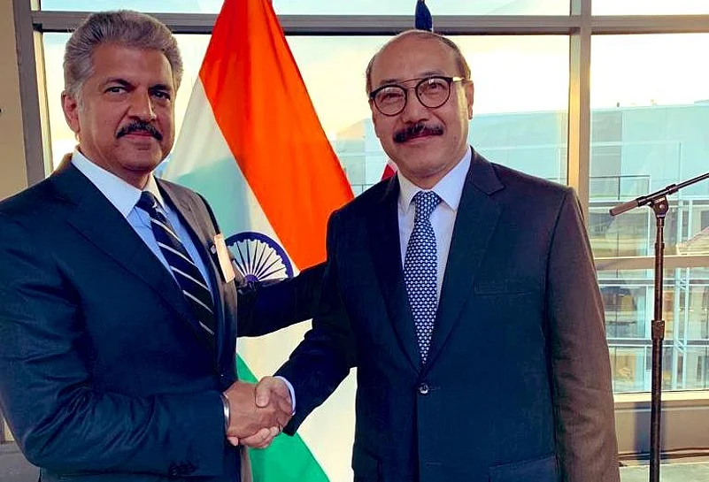 Harshvardhan Shringla, the Indian ambassador to the US, seen here with industrialist Anand Mahindra. (Picture courtesy: Twitter)