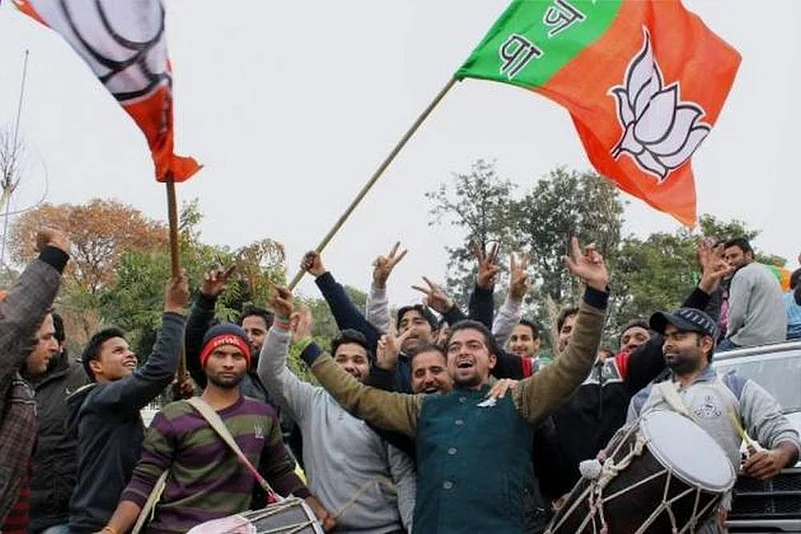 Celebrations have started at the BJP state headquarters in Jammu as supporters chanted slogans and distributed sweets amid drums beats and bursting of firecrackers.