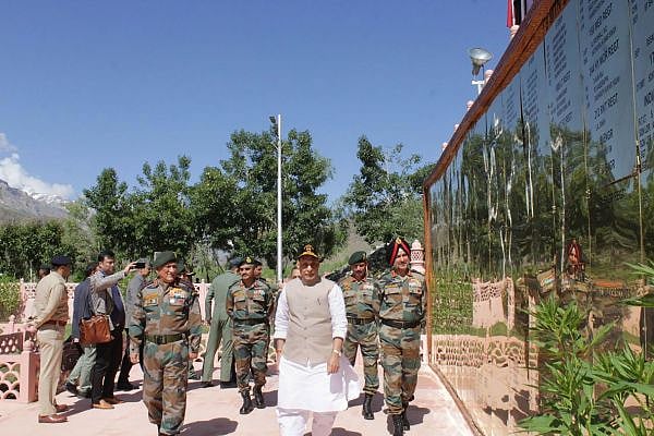 Defence Minister Rajnath Singh on Saturday paid tributes to soldiers killed in the 1999 Kargil War at a memorial in Jammu and Kashmir's Dras sector as the nation commemorated 20 years of 'Operation Vijay'.